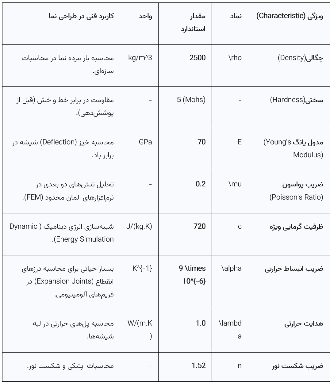 تحلیل انطباق: تولیدکنندگان شیشه فلوت در ایران (مانند شیشه قزوین، کاوه، آذر و غیره) ملزم به رعایت استاندارد ملی ۱۰۶۷۳ (معادل EN 572) هستند که دقیقاً همین مقادیر را دیکته میکند. بنابراین، در ارزیابی شیشههای پوششدار ایرانی، میتوان با اطمینان از این مقادیر در محاسبات استفاده کرد.13