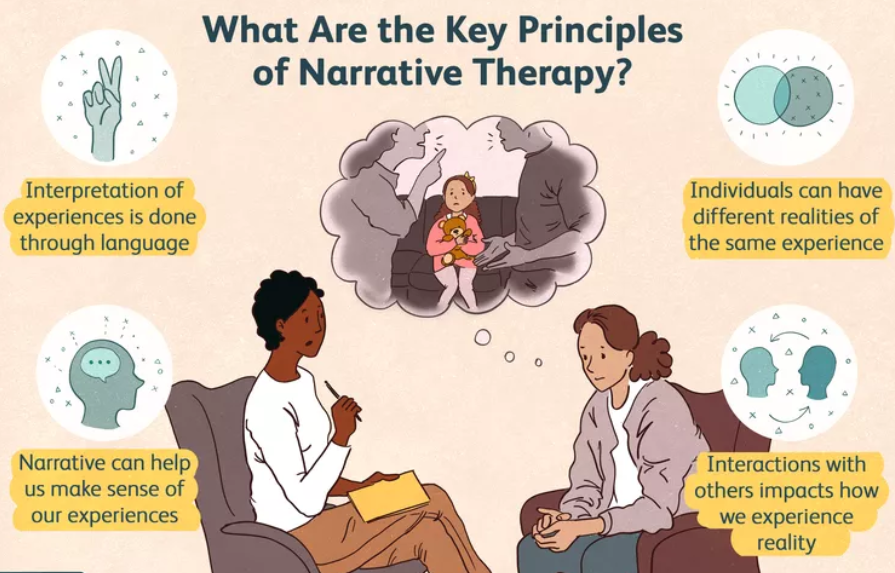 روایت درمانی: رویکردی است که به افراد کمک میکند تا با بازنویسی داستانهای زندگی خود، خود را از مشکلات شان جدا کنند. این درمان، مراجعین را به عنوان متخصصان زندگی خودشان میبیند و آنها را تشویق میکند تا روایت های منفی را به روایت های توانمندسازتر تبدیل کنند.