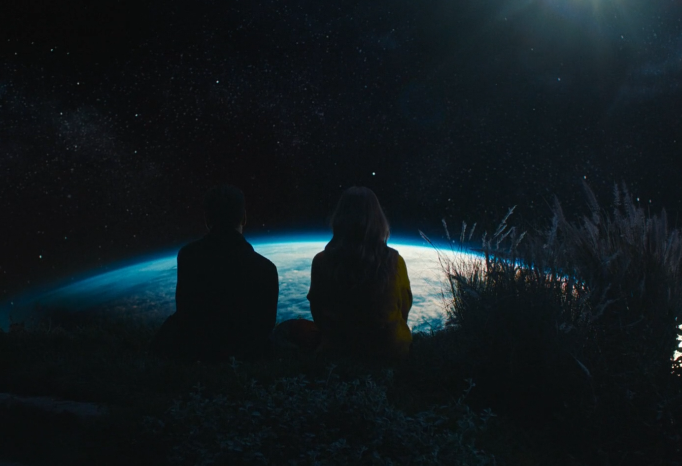 دیوید و سارا از پله های زیادی بالا می روند و به تپه ای می رسند، جایی که انگار زمین زیر پای آن دو نفر است.
