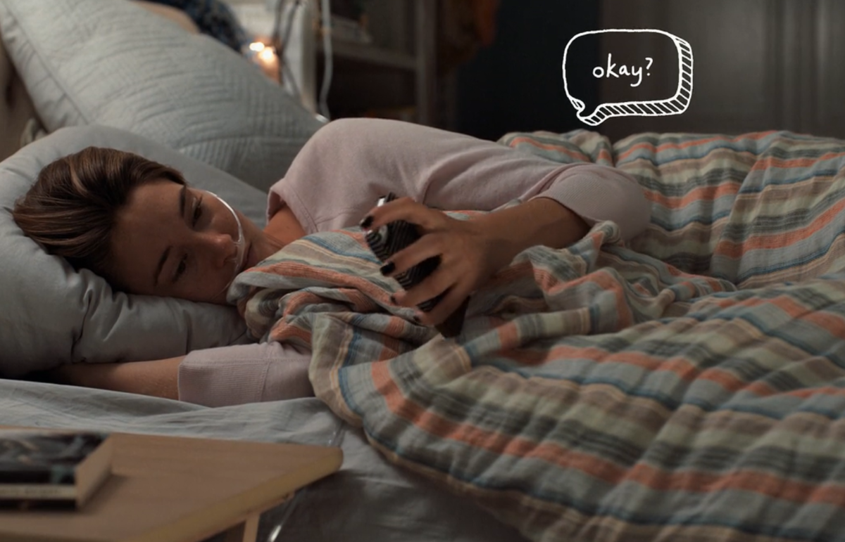 کسانیکه با چنین شرایطی درگیر هستند می دانند که وضعیت روحی فرد بیمار چقدر بهم ریخته می شود و برای بار چندم خودش را در چند قدمی نیستی و نابودی می بیند. دیگر چه اهمیتی دارد که کسی را دوست داریم یا نه، این زندگی که قرار نیست به من زمان تجربه کردنش را بدهد پس بهترین کار انتخاب سکوت و هیچ کاری نکردن است. آگوستوس که با این شرایط کاملا آشناست سعی می کند از هیزل بخواهد که با تمام مسائلی که پیش آمده باز هم لحظه ها را مغتنم شمارد و با هر کاری روحیه اش را حفظ کند مثلا تاب قدیمی خانه را در آنلاین شاپی به فروش برسانند و در توضیحش بنویسند: تاب تنهای بیچاره به خانه ای دوست داشتنی نیاز دارد.