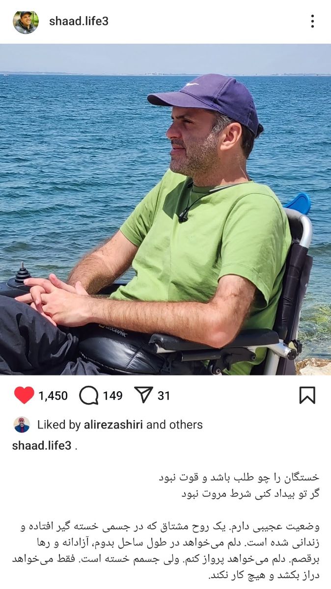 ممکن است بگویید می توانست انجام ندهد تا حالش بد نشود. در بخش نخست این نوشتار به آقای محمدمقدم شاد و شرایط زندگی اش اشاره ای داشتم می توانید از این لینک آن مطلب را بخوانید. او گاهی از اینکه با شرایط جسمی که دارد خودش را در چالش های سخت و طاقت فرسایی می اندازد دچار تردید می شود و از خودش می پرسد چرا؟ حتی کسانیکه صفحه او را دنبال می کنند این سوال را بارها می پرسند؛ چه دلیلی دارد که خودت را به این همه زحمت بیندازی آیا کاری که انجام می دهی ارزشش را دارد؟ جواب او همیشه مثبت است و می گوید واقعا ارزشش را دارد. حتی زمانیکه خودش دچار تردید و سوال می شود به خلوتی چند روزه پناه می برد، تمام احساس های بد را دوباره و با تمام وجود کاملا حس می کند و با همان اندک انرژی بر می گردد و با صدای بلند می گوید: ای روزهای نیستی و مرگ، من جز زمینی سوخته برای تو چیزی به یادگار نخواهم گذاشت و همچنان ادامه مسیر می دهد.