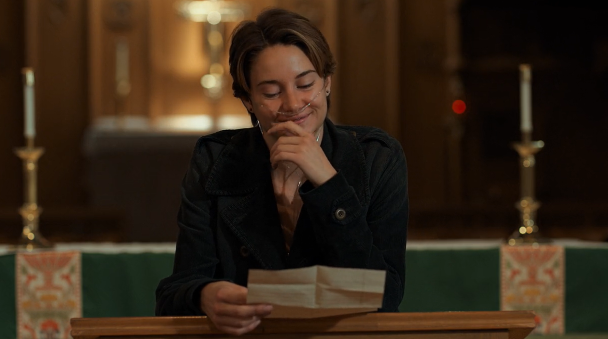 روزی هیزل، آگوستوس و ایزاک به کلیسا می روند تا سخنرانی مراسم خاکسپاری آگوستوس را تمرین کنند، هیزل نوشته ای را برای آن روز آماده کرده؛ آگوستوس واترز عشق بدشانس زندگی ام بود و ....