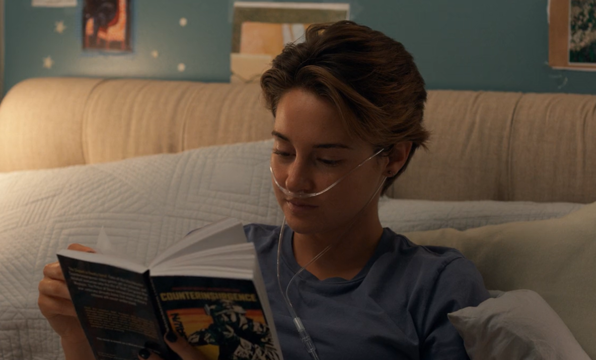 هیزل و آگوستوس با هم دوست می شوند البته فقط دوست معمولی و نه یک رابطه عاطفی.دوران آشنایی آنها جالب است یکی کتابی می خواند (مصیبتی باشکوه) با موضوع سرطان از نویسنده ای که با اینکه نمرده است اما کاملا می تواند مرگ را درک و حس آن را به تو منتقل کند و دیگری کتابی با موضوع شجاعت، جنگجویی و دلاوری می خواند. انتخاب کتاب های هیزل و آگوستوس ما را به دنیای درون آنها می برد. مهم نیست که چه درکی از شرایطمان داریم و چگونه فکر می کنیم مساله اساسی این است که با اینگونه فهم و دریافت اطلاعات چگونه اوقاتمان را می گذرانیم. آنها کتاب های خود را با هم عوض می کنند، روزی باید اجازه دهیم هوای تازه وارد ریه هایمان شود هر چند می دانیم زمان اندک و کوتاه است.