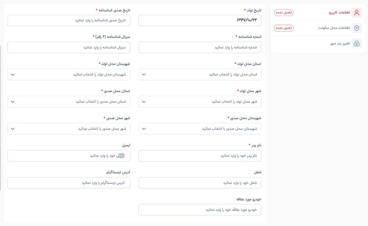 برای یه درخواست ساده، از آدم نام پدر، محل تولد، شماره شناسنامه، و کلی اطلاعات بیفایده میپرسه!