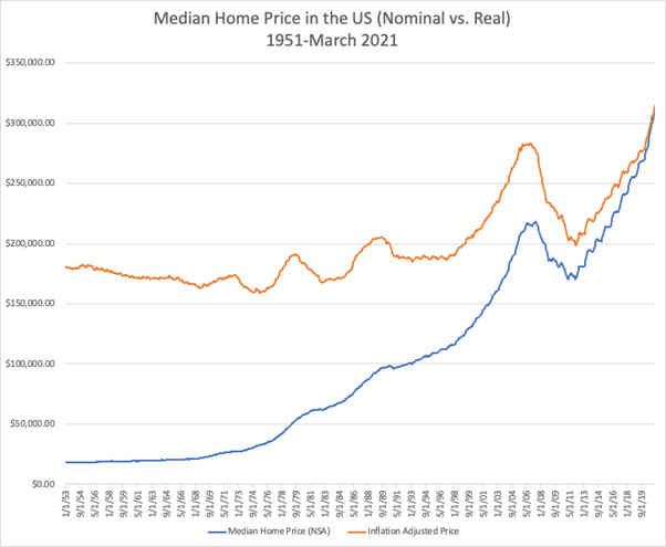 U.S. Bureau of Labour Statistics, The National Association of Realtors, The Federal Housing Financ Agency, Shiller, R. (2021). Historical Home Prices: Monthly Median Value in the US from 1953-2021. Retrieved From. https://dqydj.com/historical-home-prices/
