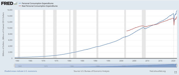 Federal Reserve Bank of St. Louis (2021). Economic Research. Retrieved From. https://fred.stlouisfed.org/series/PCE