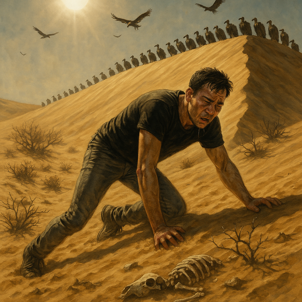 بالای سر، سایههای پهن کرکسها، که آهسته چرخ میزدند و گاهی از میان نور رد میشدند.