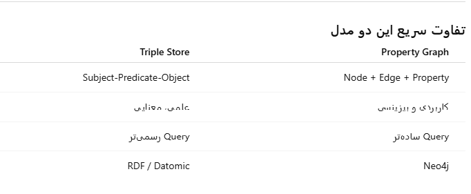 «Property graph برای اپلیکیشنها طبیعیتر است، در حالی که triple-store برای دادههای معنایی و inference مناسبتر است.»
