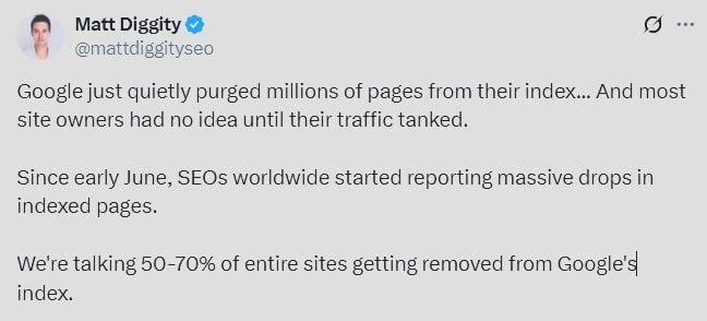 تأثیر نامتناسب روی سایتهای بزرگ: دامنههای زیر حدود ۱۰k URL تغییر محسوسی ندیدند، اما پورتالهای بزرگ (۵۰k+ URL) افت تعداد صفحات ایندکسشده را تجربه کردند.