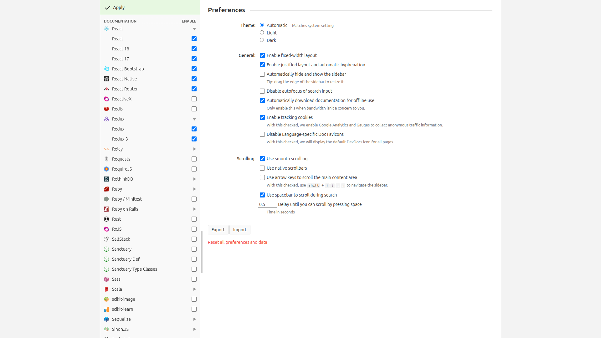 🤗 در نظرات بنویسید ایا مستنداتی که به دنبالش بودید در این مجموعه وجود داشت یا خیر! مثلا من از این مجموعه مستندات مربوط به ری اکت را تیک زدم. پس از تیک زدن موارد دلخواه روی اِعمال Apply در بالای ستون کلیک کنید.