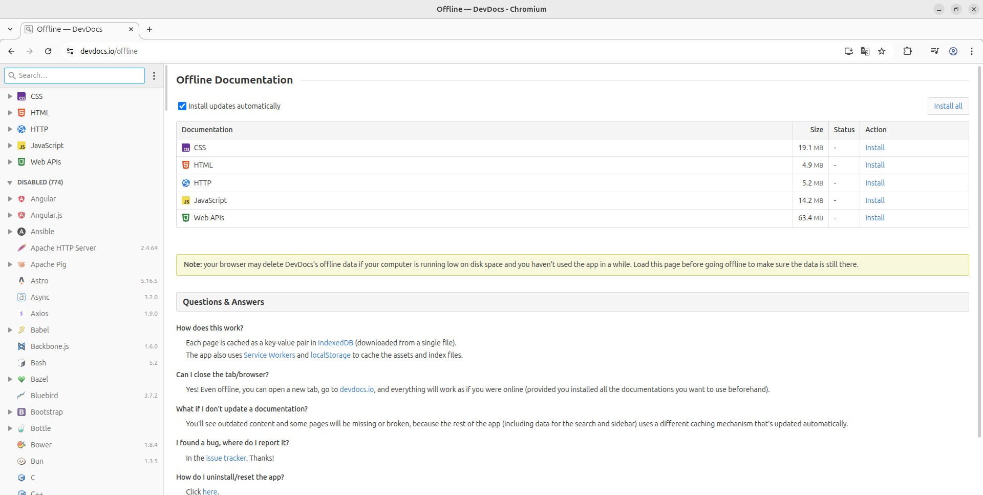 از دکمه سه نقطه در بالای ستون سمت چپ ، به Preferences بروید، و ترجیحات خودتان را در ستون سمت چپ تیک بزنید و سپس در قسمت افلاین روی نصب همه install all یا نصب موارد دلخواه کلیک کنید: