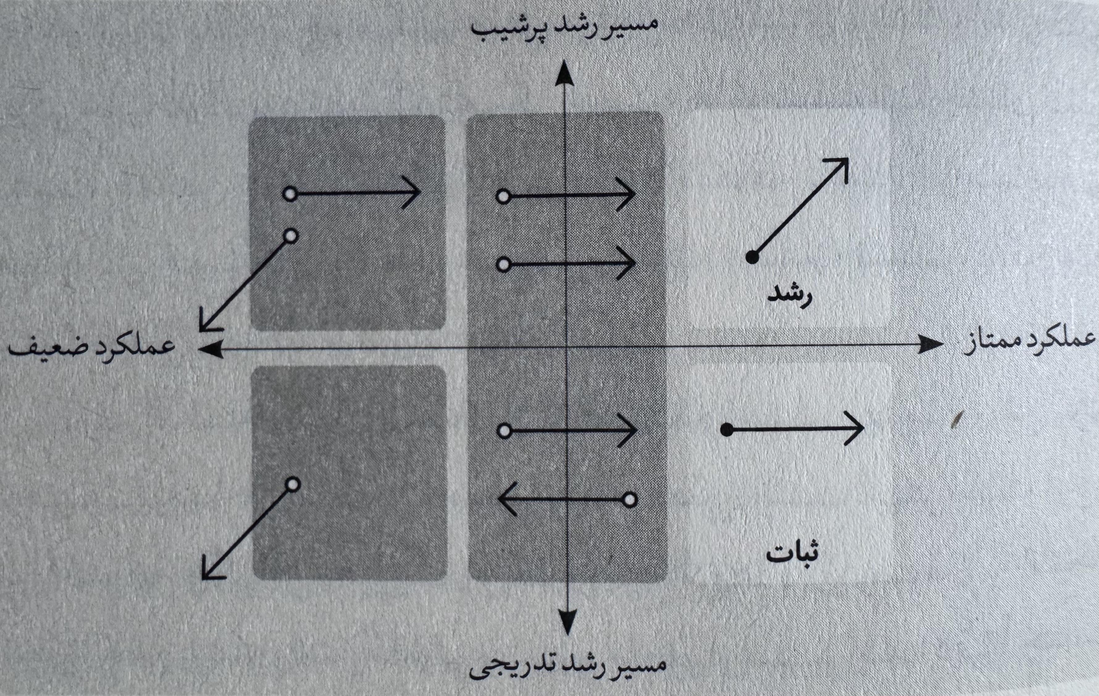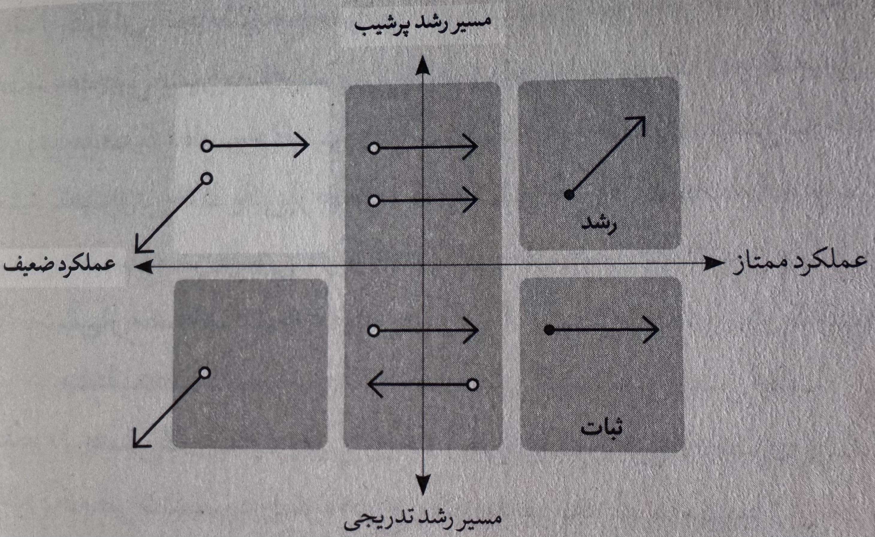 محورهای این چارچوب عملکرد گذشته و مسیر رشد آینده هستند. ارزیابی عملکرد گذشته روی محور افقی این چارچوب "بد" و "خوب" دارد اما محور عمودی این گونه نیست. ربع پایین-راست درست به اندازه ربع بالا-راست خوب است. اهمیت راک استارها در موفقیت تیم درست به اندازه سوپراستار هاست. اهمیت ثبات چیزی از اهمیت رشد کم ندارد. ترکیب درست هر یک از این ها به مرور زمان تغییر می کند ولی همیشه به مقادیری از هر دو نیاز است.