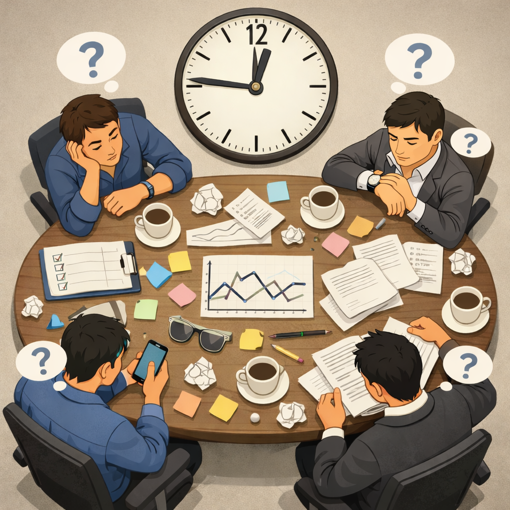 وارد جلسه میشویم بدون اینکه بدانیم دقیقاً دنبال چه هستیم. نتیجه؟ یک گپ دوستانه یا بحث عمومی.