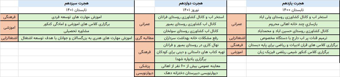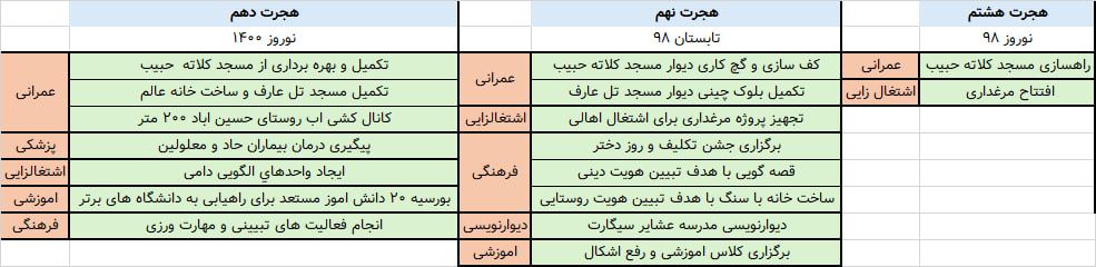 از زمان تأسیس این گروه تا امروز حدود ۱۰ سال میگذرد و در این مسیر پر پیچوخم باری به اینجا رسیده است و تا سرمنزل مقصود باید آن را به دوش کشیم. اینجا جایی برای انجاموظیفه برای من و شما، یعنی مای دانشجوست تا بفهمیم در قبال این استعداد خدادادی و امکانات مسئولیم و یادمان نرود کمی آنسوتر مردمانی از جنس آفتاب چشم امیدشان به همدلی من و توست تا دستشان را بگیریم و فقط برای آبادانی روستا که نه، بلکه برای آبادانی کشورمان، دوشادوش یکدیگر قدم برداریم. در حال حاضر این گروه دارای پنج کارگروه آموزشی، فرهنگی، عمرانی، اشتغالزایی و رسانه است که هر کدام از اهمیت ویژهای برخوردار است و رسالت آنها در جهت احقاق اهداف یادشده است.