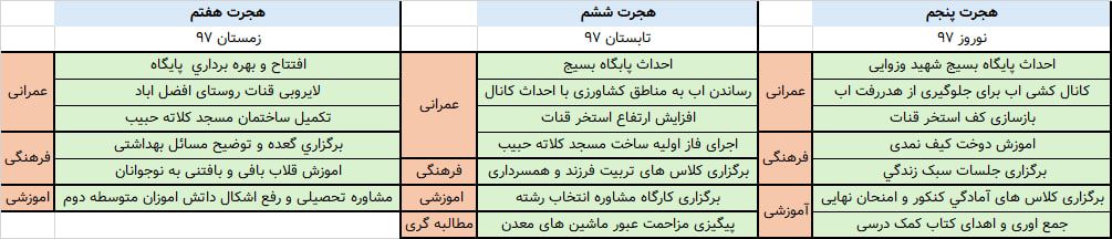از سال ۹۶ باتوجهبه شناساییهای انجام شده و ظرفیتهای گروه، شهرستان نهبندان استان خراسان جنوبی بهعنوان منطقه هدف انتخاب گردید. در این اردوی دهروزه که در روستاهای لخشک، دهو، آتشکده سفلی، کلاته جنگل و عباسآباد بود بیش از ۱۵۰ نفر از دانشجویان در بخشهای مختلف آموزشی، فرهنگی، عمرانی و مطالبهگری شرکت نمودند. همچنین در سال ۹۶ در مناطق زلزلهزده ازگله، اسلامآباد و سرپل ذهاب در دو رسته خدمترسانی و عمرانی فعالیت داشتند. بهتدریج روستاهای افضلآباد، کلاته حبیب، تل عارف، حسینآباد و سیگارت نیز به روستاهای تحت پوشش گروه اضافه گردیدند. خدمترسانی در مناطق سیلزده استان گلستان، ارائه خدمات آموزشی در شهرستان منوجان استان کرمان و بستهبندی و توزیع ارزاق در ماه مبارک رمضان در روستاها گوشهای از فعالیتهای دیگر این گروه در سالیان اولیه تشکیل بود.