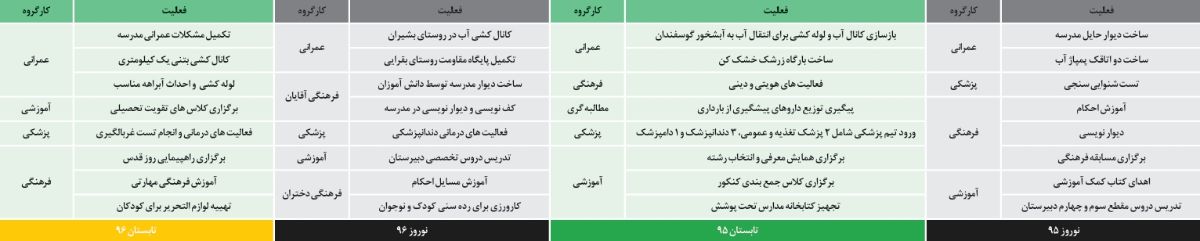 پ.م: باتوجه به ظرفیت و علاقه بچهها، هرساله کارگروههای جدیدی از جمله مطالبهگری، پزشکی، دیوارنویسی و... به فعالیتهای این گروه اضافه و کم میشه