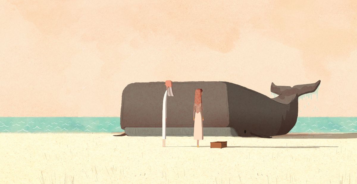قصه اصلی فیلم از جایی آغاز میشود که در این جزیرهای که خود نماد تنهایی این خانواده منزوی است، یک نهنگ به گل مینشیند؛ ابتدا با تلاش نافرجام پدر و دختر آغاز ولی با کنارهگیری و افسردگی مجدد پدر، دختر را با این معضل که خود استعارهای از زندگی بهگلنشسته خودش است، تنها میگذارد. ناخدا به فریضه انزوا روی میآورد و با همان خوابزدگی همیشگیاش، مجدداً بهمرور آن شب ازدستدادن همسرش روی میآورد. نقطه تلخ کارگردانی این اثر آنجایی است که این انیمیشن، رهایی و نجات نهنگ و دختر را در سکانسی نمایش میدهد که پدر تمام خاطرات جوانی خود را نابود میکند، به شکلی که انگاری دارد خودش را به کشتن میدهد و تا مرز نابودی قدم برمیدارد. سکانسی دیگر که باز هم میتواند زخمی حتی عمیقتر از قبل بر تن میراثداران سالهای جنگ ۸ساله ایران و عراق ایجاد کند. میراثی که امروز نسل به نسل از طریق این «سروهای سبزِ در خزان»، نشئتگرفته میشود و لبتشنه ما را سیراب میکند.