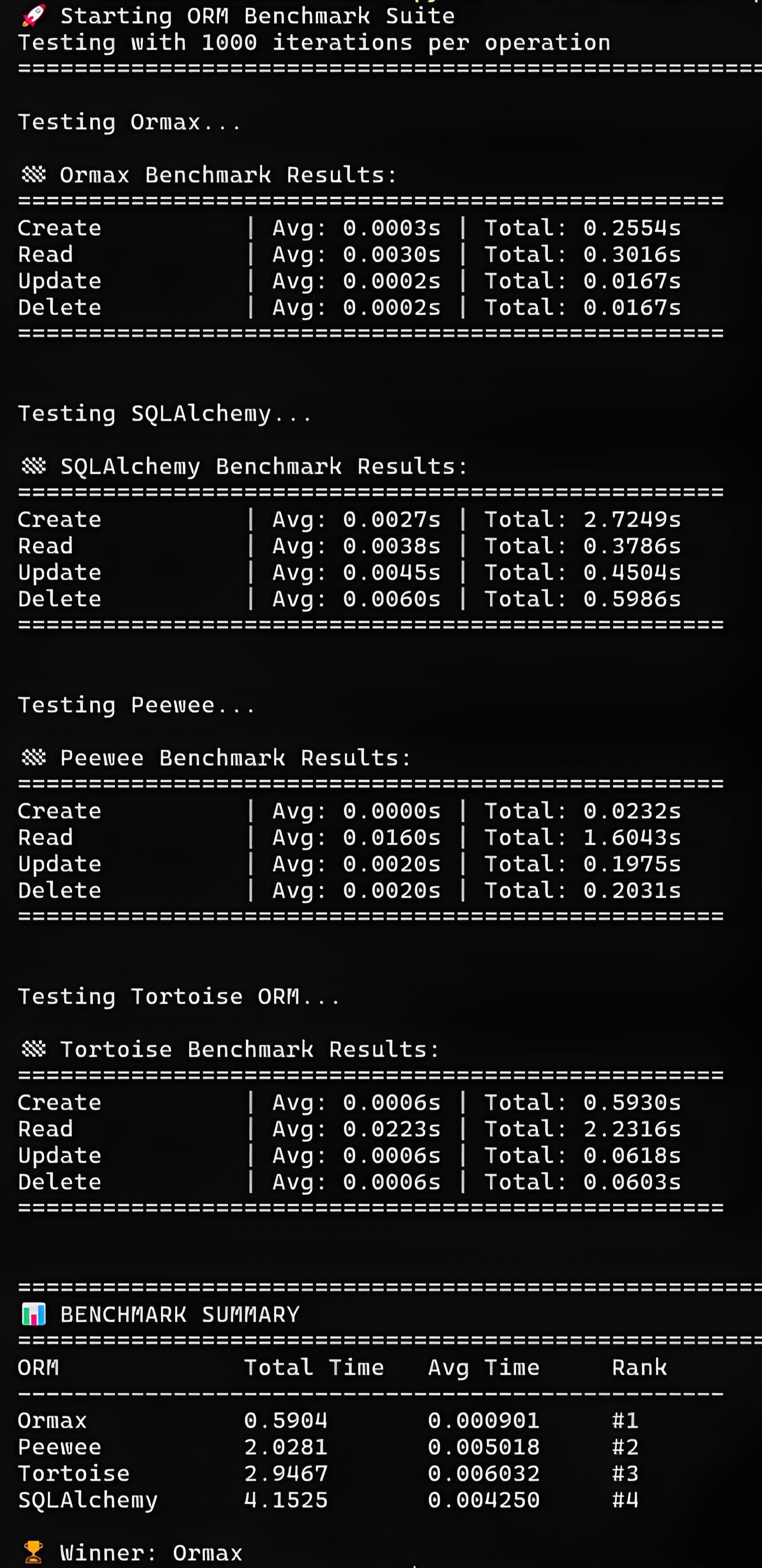در این مقاله نتایج بنچمارک واقعی بین چند ORM معروف پایتون را بررسی میکنیم و میبینیم چرا Ormax برنده این رقابت شد.