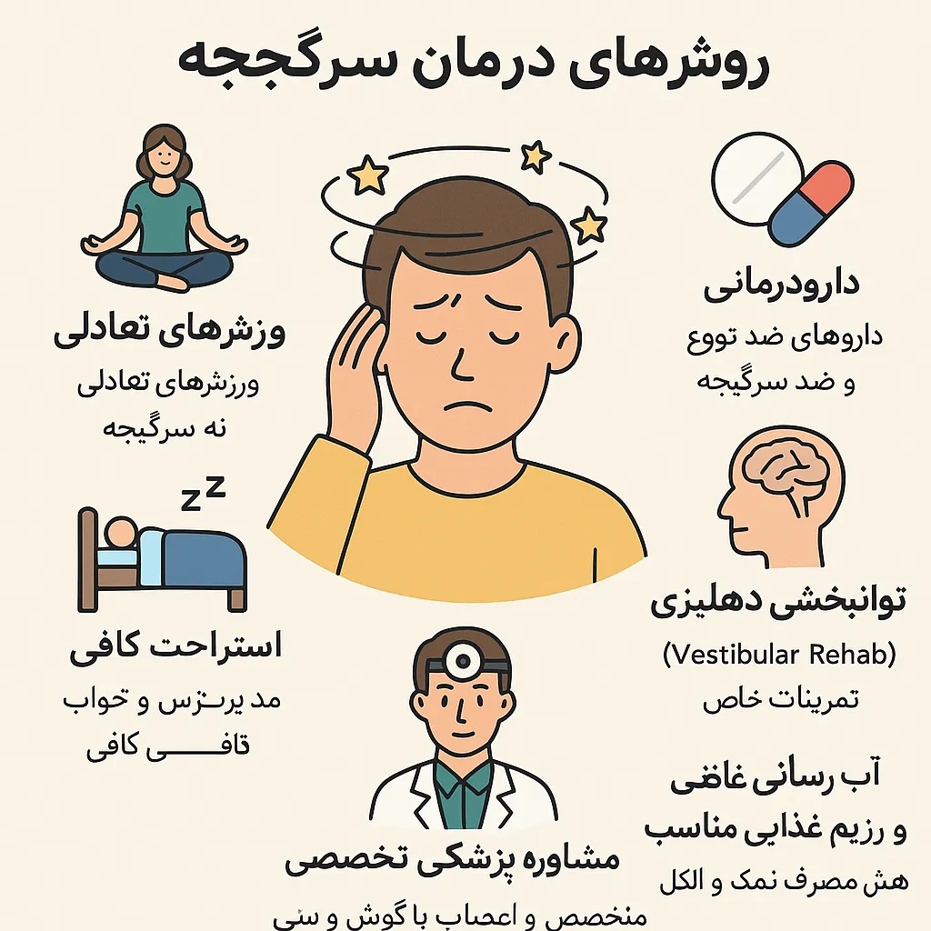 برای درمان سرگیجه ابتدا باید علت اصلی آن شناسایی شود، چرا که این عارضه ممکن است به دلیل اختلال در گوش میانی، مغز یا سیستم تعادل بدن ایجاد شود. یکی از رایجترین دلایل سرگیجه، تکان خوردن ذرات کریستالی در مایع گوش است؛ که نیاز به درمان تکان خوردن مایع گوش دارد. در این موارد، مانورهای حرکتی مانند مانور اپلی یا استفاده از فیزیوتراپی تخصصی گوش میتواند مؤثر باشد. برای درمان سرگیجه گوش میانی، ممکن است داروهای ضد التهابی، آنتیبیوتیکها یا تمرینات تعادلی توصیه شوند. همچنین در برخی موارد، اصلاح سبک زندگی، کاهش مصرف نمک و کنترل استرس نقش مهمی در بهبود وضعیت بیماران دارد. منبع: «کلینیک گوش شیراز | shirazearclinic»