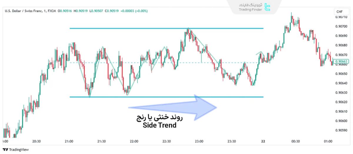 در ساختار رنج، قیمت در یک بازه مشخص نوسان میکند بدون آنکه سقفها یا کفهای قابلتوجهی ایجاد کند. این حالت تحلیل بازار را دشوار میکند؛ اما با استفاده از تکنیکهای ICT، میتوان در نزدیکی نواحی حمایت یا مقاومت، نقاط ورود یا خروج مناسبی یافت.