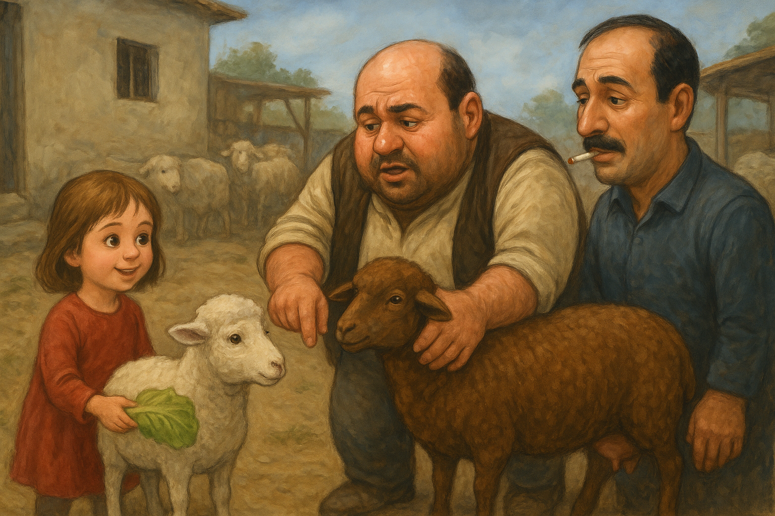 گوسفند را خریدیم. دخترک با گوسفند خداحافظی کرد و بعد تازه ما یاد مهمترین نکته کار افتادیم.