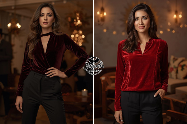 یک تونیک مخمل به رنگ زرشکی تیره یا سبز یشمی را با شلوار راسته مشکی ست کنید. این ترکیب کلاسیک و شیک است و میتوانید با کمربند طلایی یا اکسسوریهای اناری آن را کامل کنید.