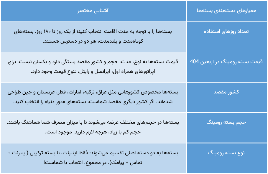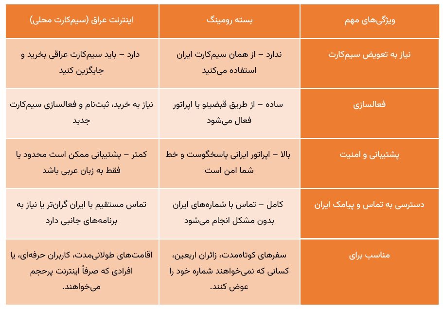 در جدول زیر، تفاوتهای اصلی بین بسته رومینگ و اینترنت عراق را به زبان ساده ببینید: