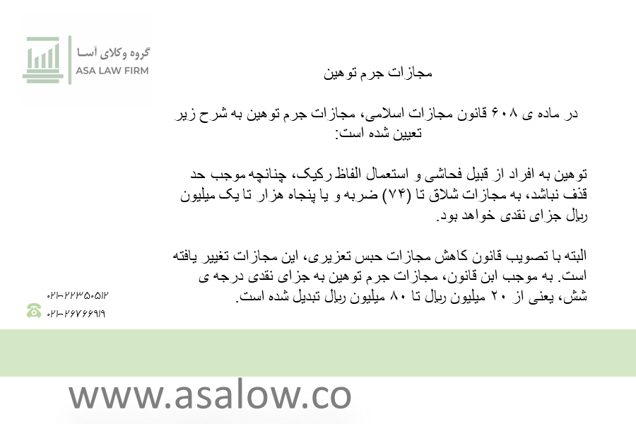 توهین یکی از جرائم بسیار شایع در سطح جامعه می باشد. به خصوص در حال حاضر که با گسترش تکنولوژی، بستر توهین به افراد در قالب های گوناگون فراهم گردیده است.در این مطلب به بررسی جرم توهین چه در فضای واقعی و چه در فضای مجازی می پردازیم. با گروه وکلای آسا همراه باشید.