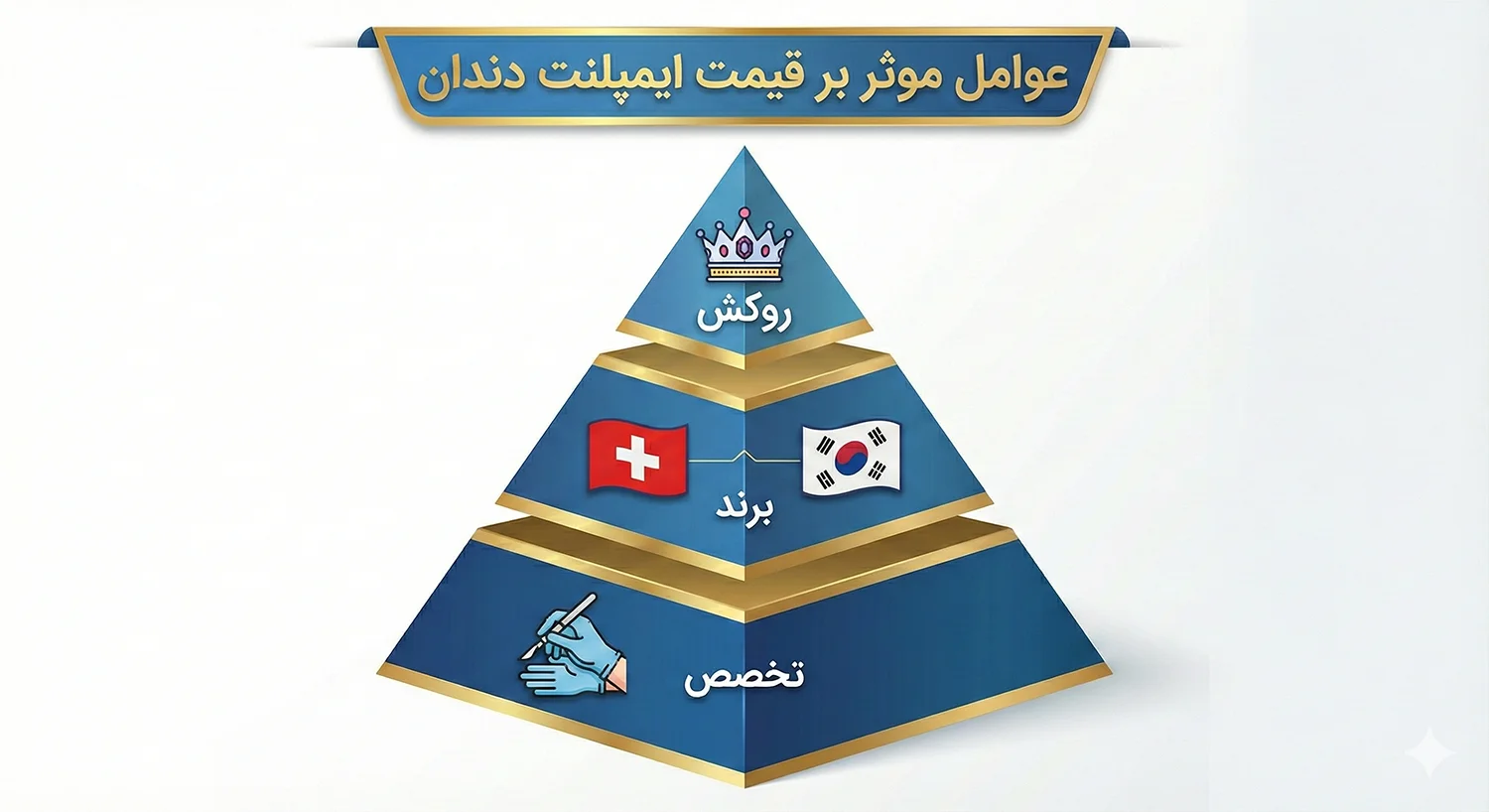 قیمت ایمپلنت دندان یک عدد ثابت نیست و به فاکتورهای زیادی بستگی دارد. مهمترین عوامل عبارتند از: