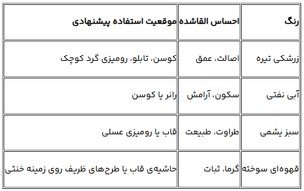 در ادامه بهصورت دقیقتر به اصول رنگبندی ترمه در چنین فضاهایی میپردازم: