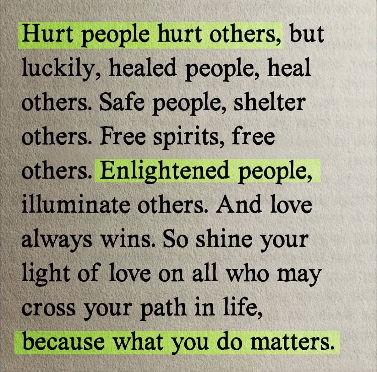 ترجمه متن عکس: آدمهای زخمخورده، به بقیه زخم میزنن اما خوشبختانه آدمهای ترمیمشده، بقیه رو هم ترمیم میکنن.