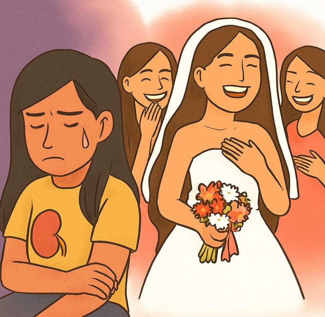 سه ماه بعد فریسا پی برد شب قبل چند نفر از همکلاسیهایش به جشن کوچکی به مناسبت بهبودی لنا دعوت شدهاند و فریسا نمیتوانست بفهمد که چرا او جزو مدعوین نبوده و چون از ترس سرکوفت شنیدن، نمیخواست با خانوادهاش درد و دل کند، آنقدر بغضش را فروخورد تا به کلیه بازماندهاش فشار آمد و درد شدیدی در پهلوی راستش پیچید و ادرارش به رنگ خون در آمد و در بیمارستان بستری شد اما به محض ترخیص خواسته بود برای رفع دلتنگی نزد لنا برود.