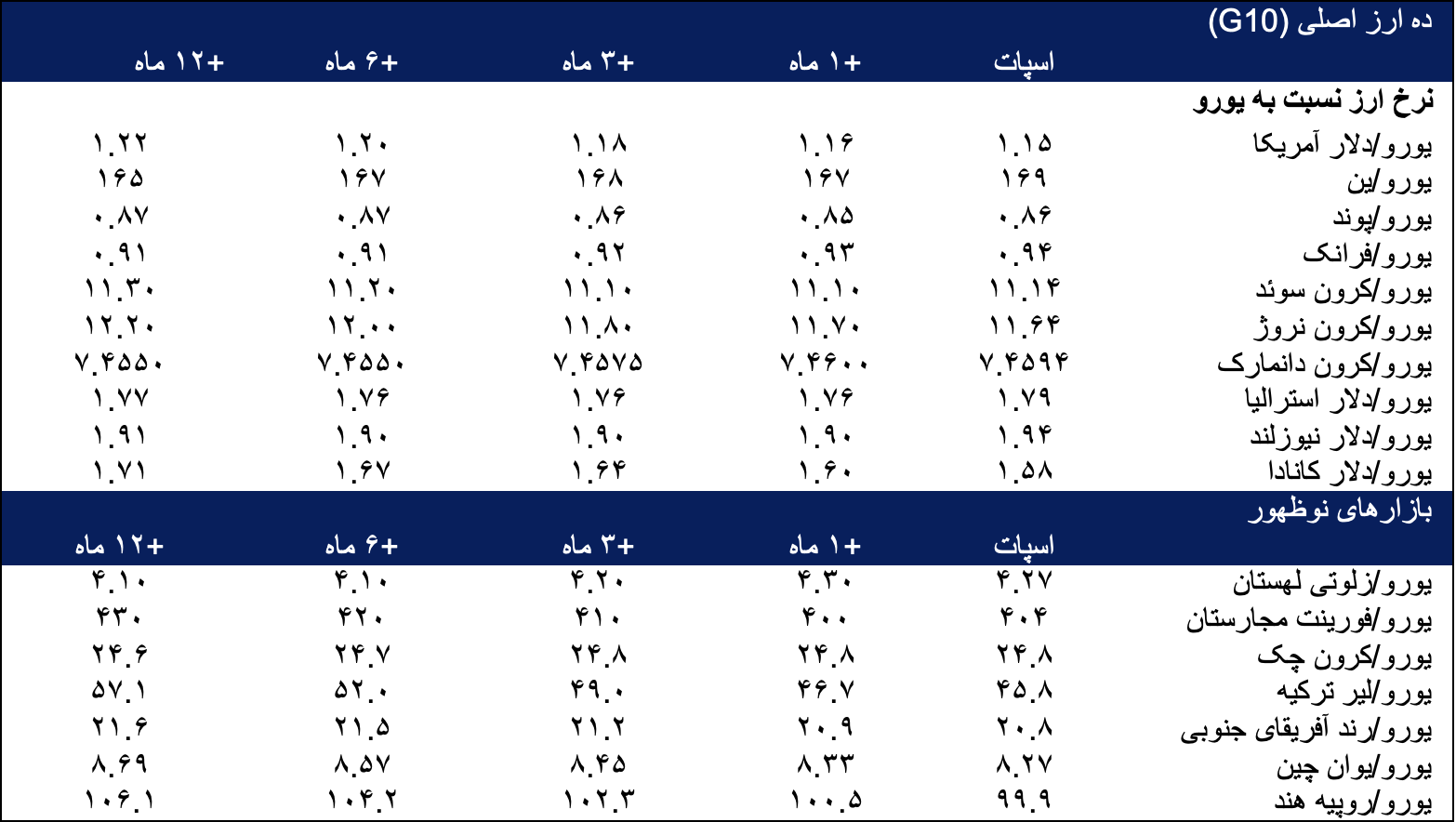 •ریسکها: مهمترین ریسک در مسیر افزایش قابل توجه نرخ یورو/پوند نسبت به پیشبینی ما، یک فروش شدید در بازارهای جهانی و/یا تمرکز دوباره بر وضعیت مالی شکننده بریتانیا است. سایر ریسکها به تحولات مرتبط با چشمانداز رشد نسبی بین منطقه یورو و بریتانیا مربوط میشوند.