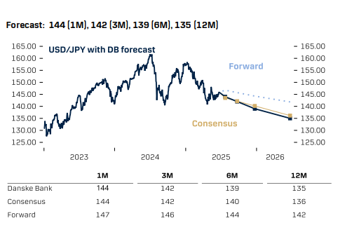 • جمعبندی: ما پیشبینی میکنیم که نرخ USD/JPY طی ۱۲ ماه آینده بهتدریج به سمت ۱۳۵ کاهش یابد. کاهش فاصله نرخهای بهره بین ژاپن و سایر اقتصادهای گروه ۱۰ (G10) باید از تقویت ین ژاپن در سال ۲۰۲۵ حمایت کند. ادامه چرخه کاهش نرخ بهره فدرال رزرو، همراه با احتمال افزایش بیشتر نرخ بهره توسط بانک مرکزی ژاپن (BoJ)، میتواند فشار نزولی بیشتری بر این جفتارز وارد کند. علاوه بر این، ین ژاپن همچنان از وضعیت «دارایی امن» خود در شرایط نوسان بالای سنتیمنت ریسک جهانی بهرهمند است و در مقایسه با سایر ارزهای G10، در برابر اخبار تعرفهای، مقاومت قابلتوجهی از خود نشان داده است.