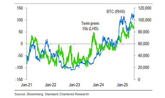 نمودار ۶: بیتکوین همچنان با پرمیوم نگهداری بلندمدت اوراق خزانهداری آمریکا همبستگی دارد