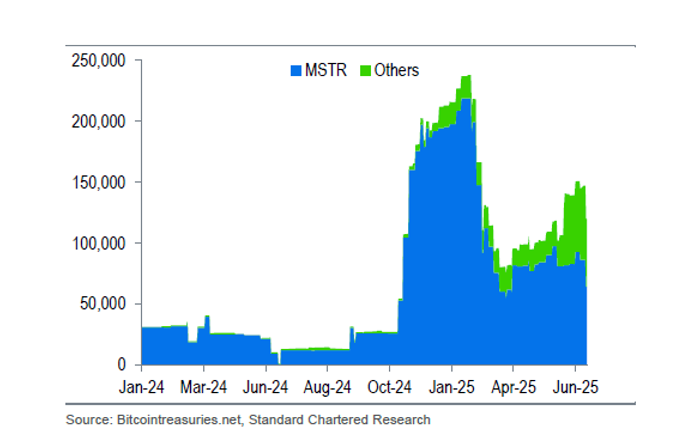 با اینکه سرعت خرید MSTR در ماههای اخیر کاهش یافته، افزایش شدید خرید شرکتهای غیر از MSTR در سهماهه دوم نشان میدهد که تازهواردان به این حوزه میتوانند کاهش احتمالی خرید MSTR در سهماهه سوم را جبران کنند. در نتیجه، انتظار داریم مجموع خرید بیتکوین توسط خزانهداریها در سهماهه سوم بیش از سهماهه دوم باشد – که این موضوع یک عامل مثبت برای جریانهای ورودی سرمایه خواهد بود.