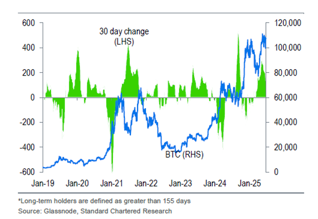 نمودار ۷: تغییر خالص پوزیشن دارندگان بلندمدت بیتکوین
