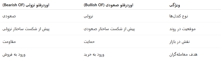 📊جدول مقایسه اوردرفلو صعودی و نزولی