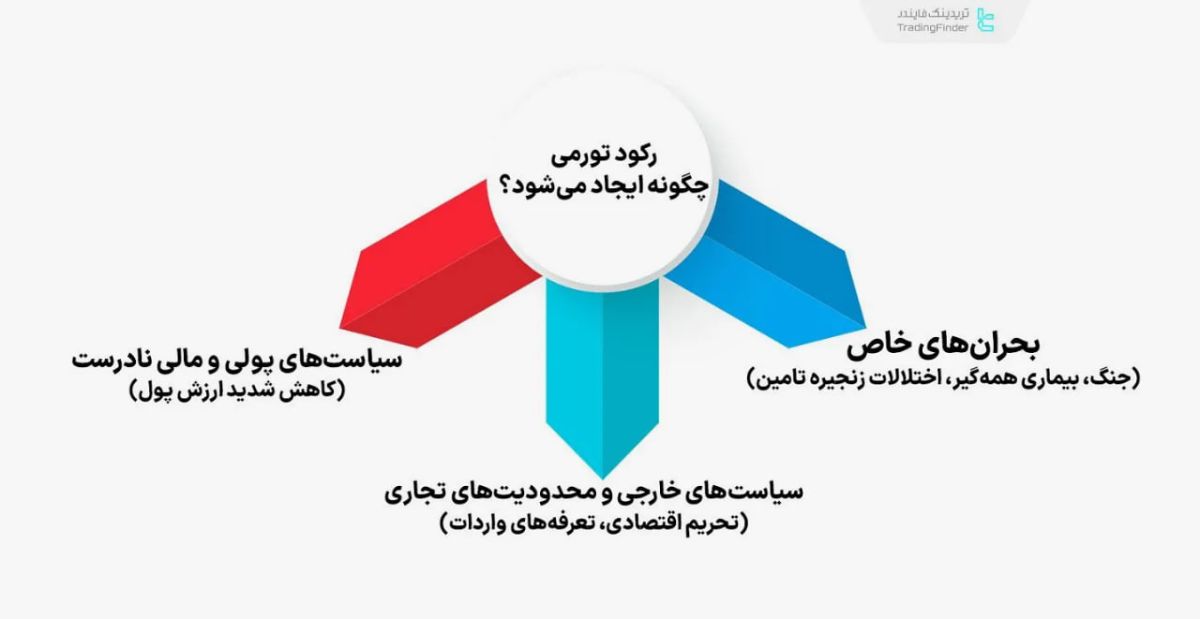 رکود تورمی به دلایل مختلفی در اقتصاد یک کشور ایجاد میشود که میتوان آنها را در دو دستهی عوامل داخلی و خارجی طبقهبندی کرد: