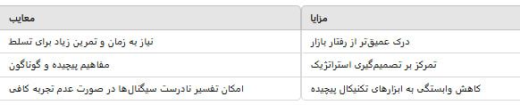 عدم وابستگی به اندیکاتورهای پیچیده: این روش به معاملهگران اجازه میدهد تا بدون استفاده از اندیکاتورهای پیچیده، تصمیمگیریهای استراتژیک و مبتنی بر دانش کافی داشته باشند.