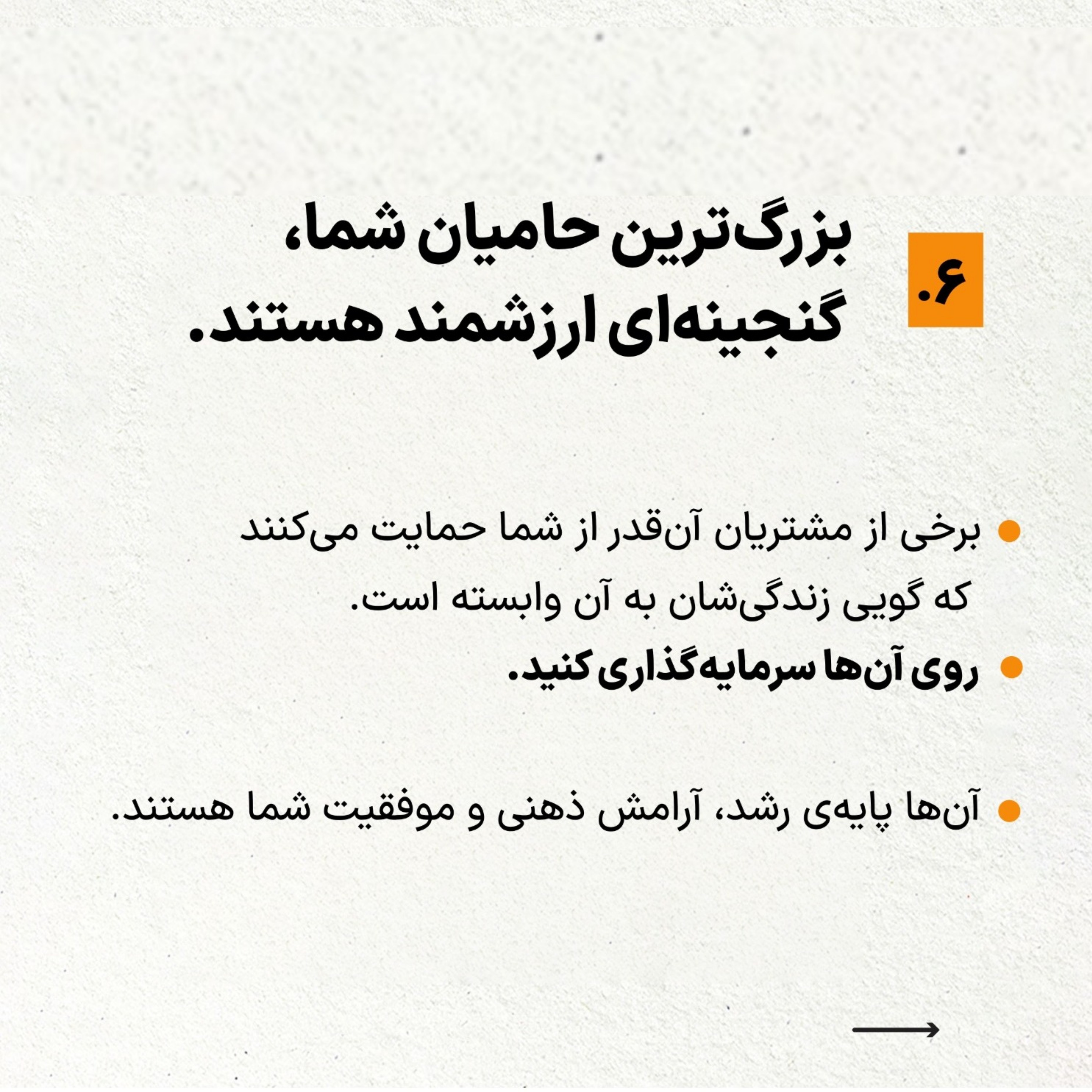 6- بزرگترین حامیان شما، گنجینهای ارزشمند هستند.