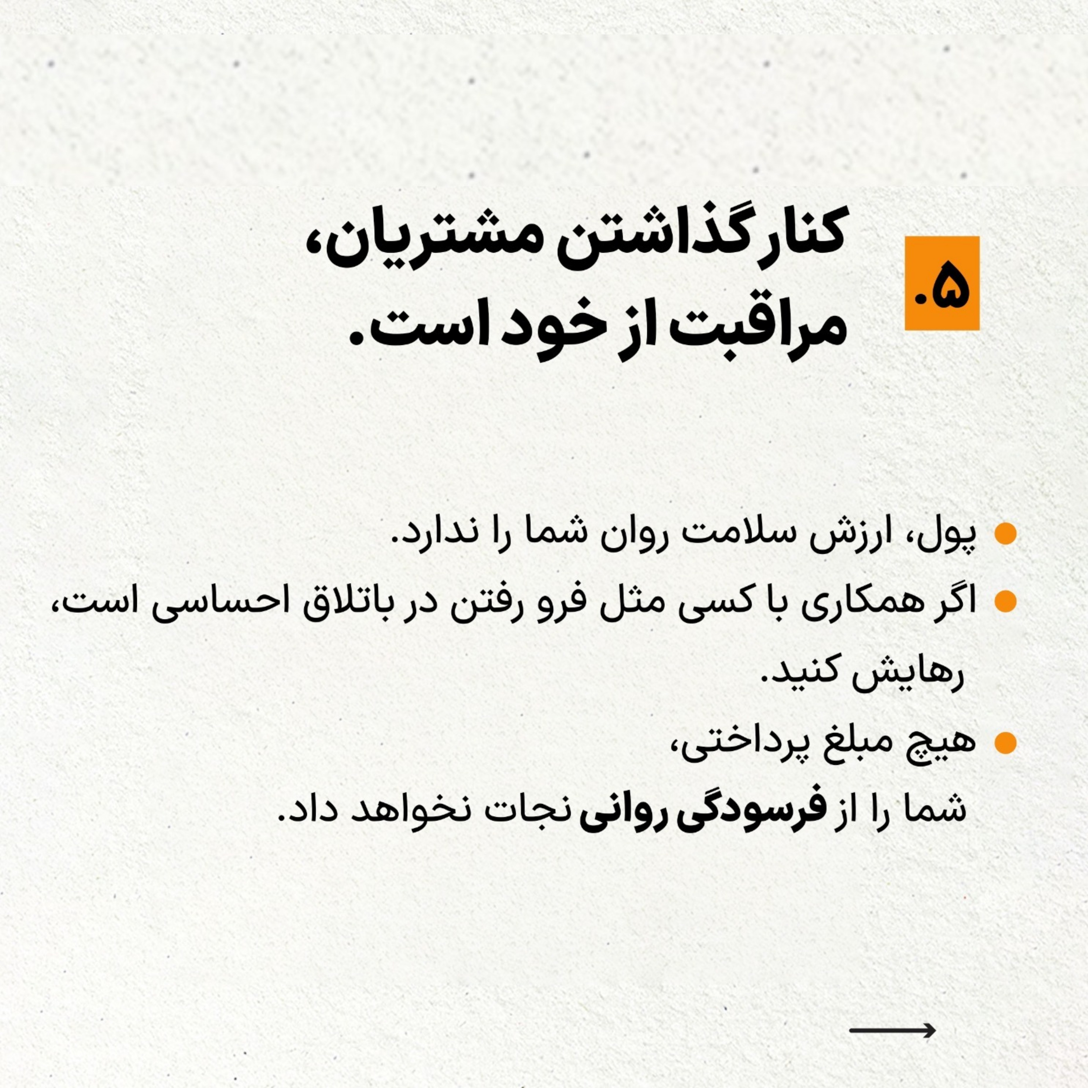 5- کنار گذاشتن مشتریان، مراقبت از خود است.