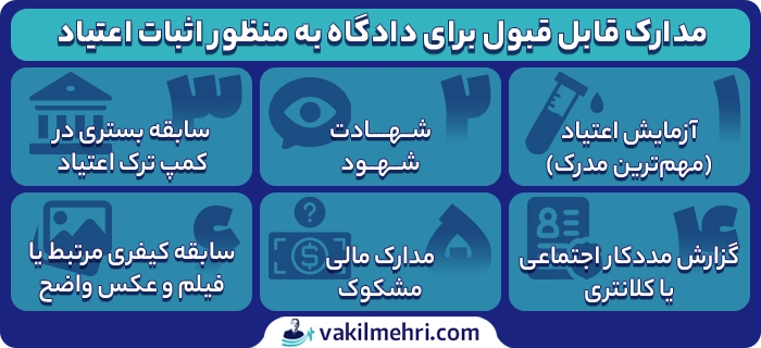 مدارک قابل قبول برای دادگاه به منظور اثبات اعتیاد این موارد هستند:
