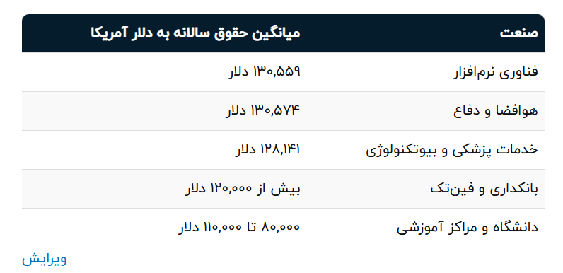 در آمریکا، مهندسان IT فقط در شرکتهای فناوری کار نمیکنند؛ آنها تقریباً در همه صنایع میتوانند کار پیدا کنند که تعدادی از مهمترین حوزههای فعالیتشان را در جدول زیر آوردیم:
