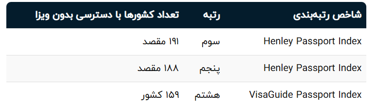 پاسپورت اتریش همواره یکی از معتبرترین و قدرتمندترین گذرنامهها در سطح جهانی محسوب شده و به دارندگان آن اجازه سفر آزادانه به کشورهای بسیاری را میدهد. البته رتبه دقیق آن بسته به شاخص مورد بررسی متفاوت است: