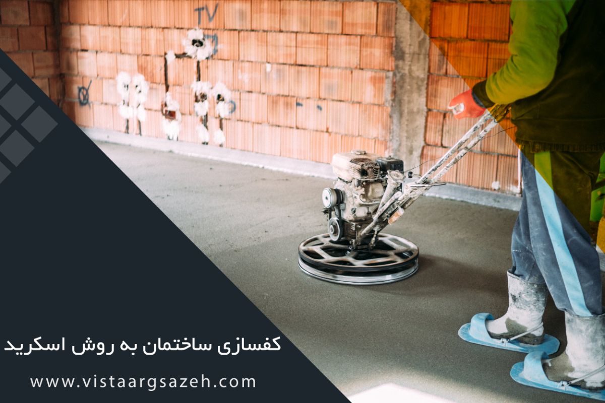 در روش اسکرید از دستگاه انتقال مصالح به بالا استفاده می شود که سرعت اجرای کفسازی را چندین برابر می کند. همچنین این روش سبب کاهش نیاز به نیروی انسانی برای پیاده سازی می شود که می تواند هزینه کلی پروژه را (به ویژه در پروژه های بزرگ ساختمانی) به طور چشمگیری کاهش دهد.