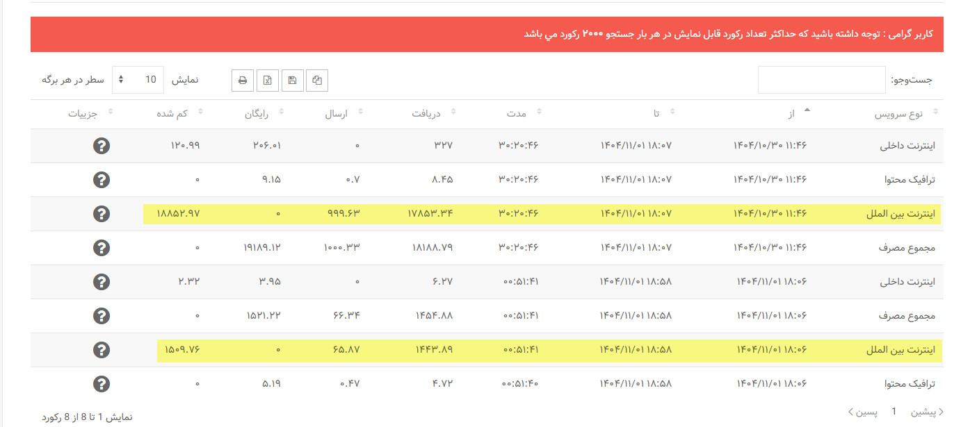 در تصویر فوق تاریخ و حجم بینالملل فقط برای یک روز کامل قابل مشاهده می باشد.
