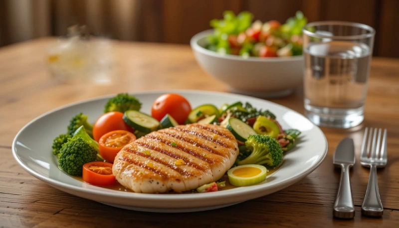 پروتئین باکیفیت: منابع پروتئینی مثل مرغ گریل شده، ماهی سالمون یا تخم مرغ باعث احساس سیری بیشتر و کنترل بهتر قند خون میشوند.