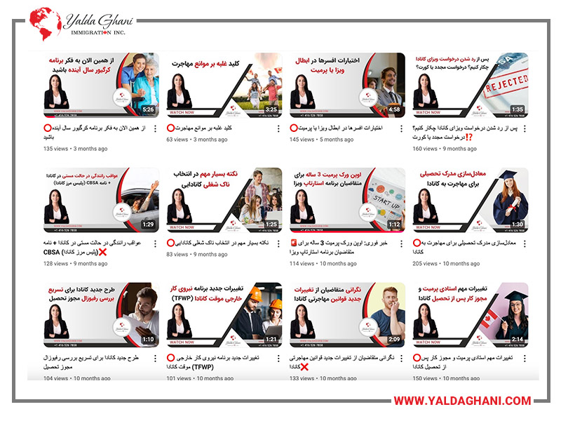 آپدیتها و اخبار مهاجرتی: کسب اطلاع از آخرین آپدیتها و اخبار مهاجرتی کانادا از ویژگیهای برتر کانال یوتیوب سازمان مهاجرتی یلدا غنی هست.
