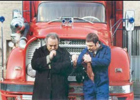 در همین حال، از دور صدای عطسه یک موتور قدیمی به گوش رسید. همه ساکت شدند. یک "خاور" به رنگ آسمان دودی، با چراغهای کج و کوله و بدنی پر از زخم، مثل یک قهرمان خسته از جنگ، با صدایی به هیبت یک هواپیما جلوی در ایستاد.